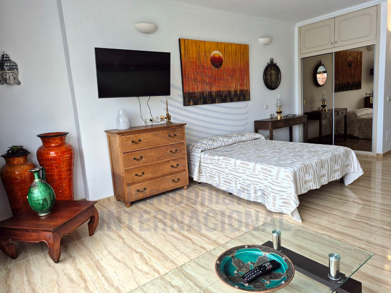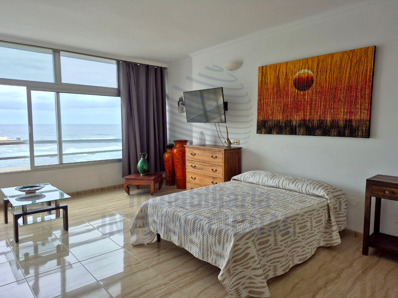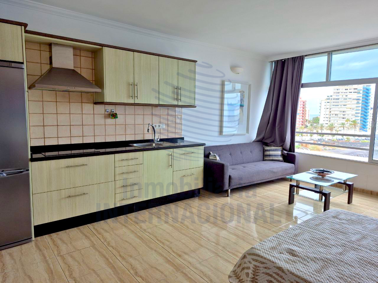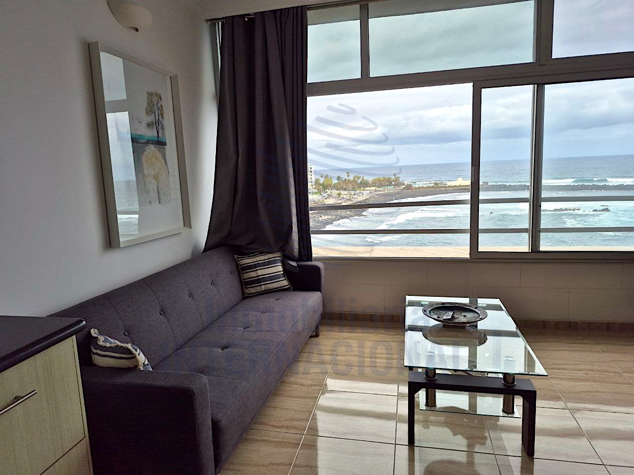 Estudio en alquiler de temporada, mínimo 5 meses máximo 9 meses, disponible desde octubre. Amueblado y equipado, excelentes vistas, última planta, primera línea de mar. En edificio con amplio solarium y piscina. Mensualidades de 900 euros, la luz se paga por separado. Situado frente a la Playa, cerca d ellas piscinas Martiánez y del centro comercial. Alquiler de temporada no renovable.